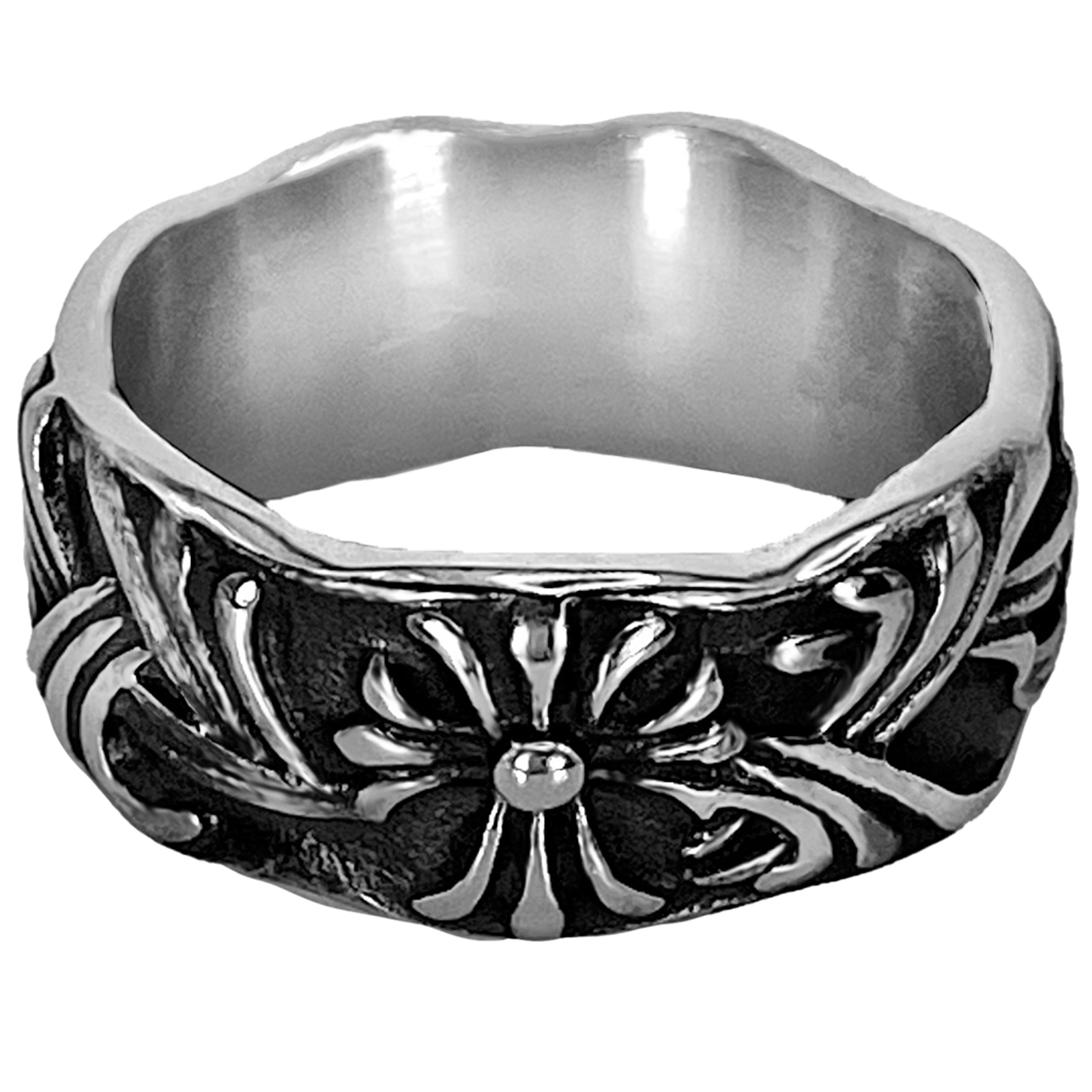Stainless Steel Day of Dead Skull Ring w/ Gold Crosses