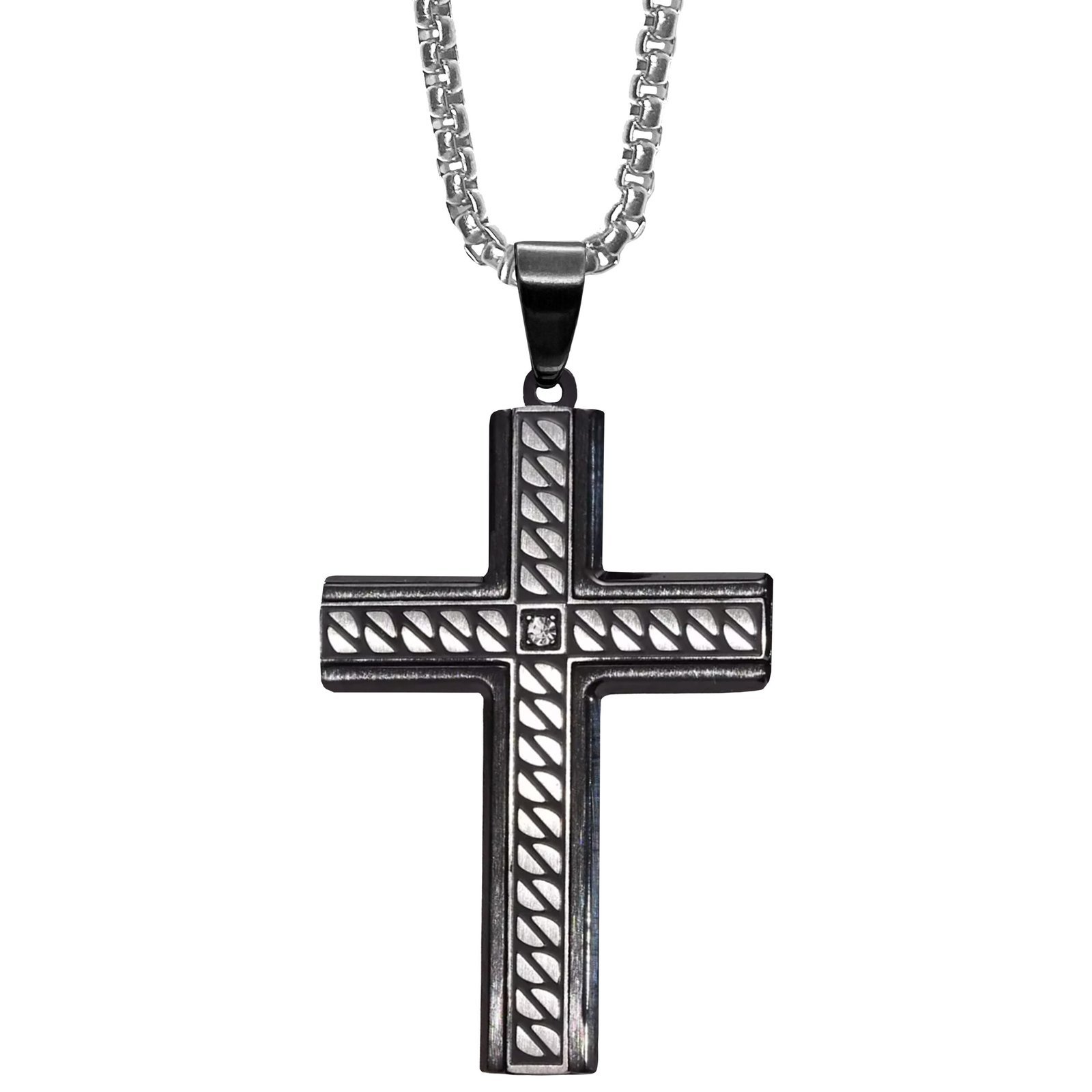 Stainless Steel Chain With Two Toned Black Cross Pendant