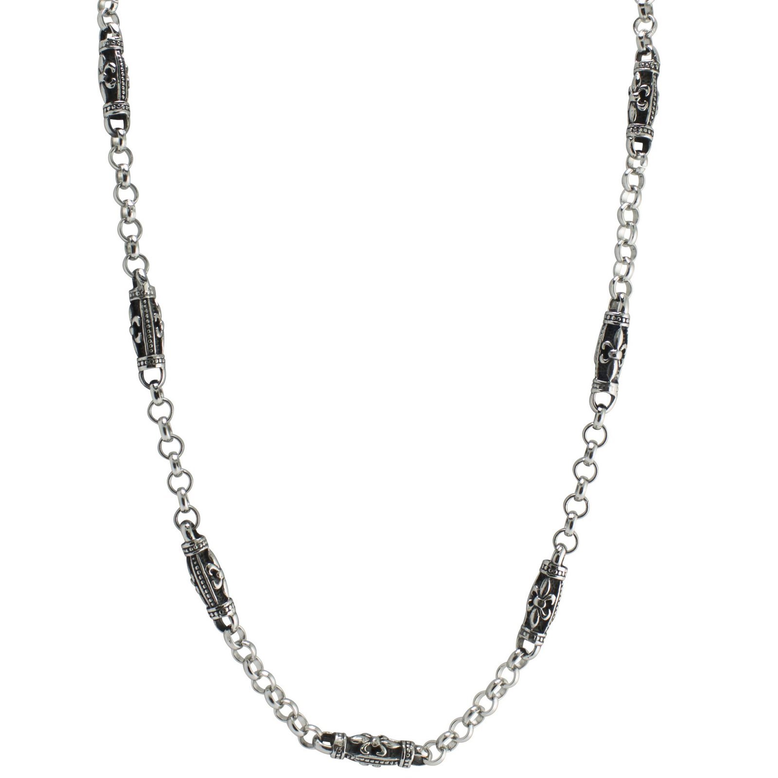 Chain in Stainless Steel with Specially Carved Links with Fleur de Lis Design