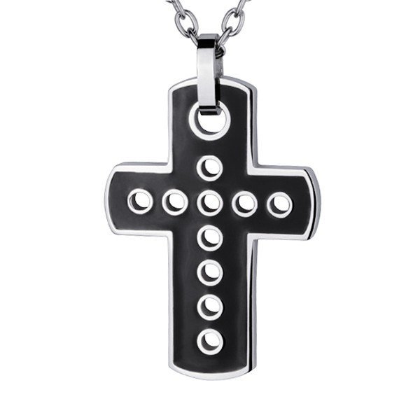 Stainless Steel Cross with Black Enamel & Punched Holes. Great Item for Fathers Day.