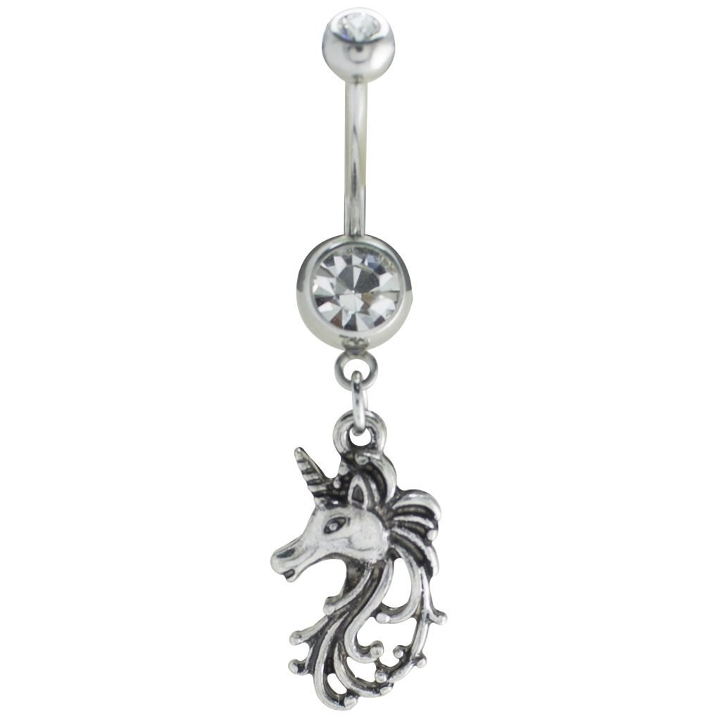 Stainless Steel CZ Unicorn Head Dangle Belly Ring