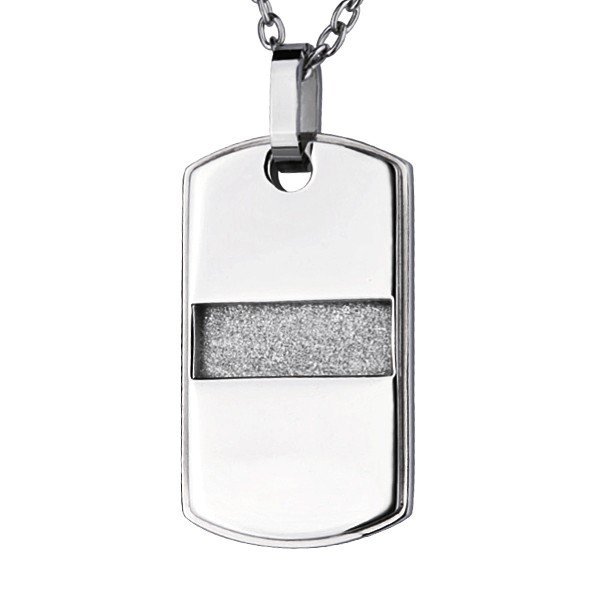Stainless Steel Dag Tag Pendant with Shimmering Sandblast Texture. The Bail Can Accommodate a Chain up to 5mm Wide.