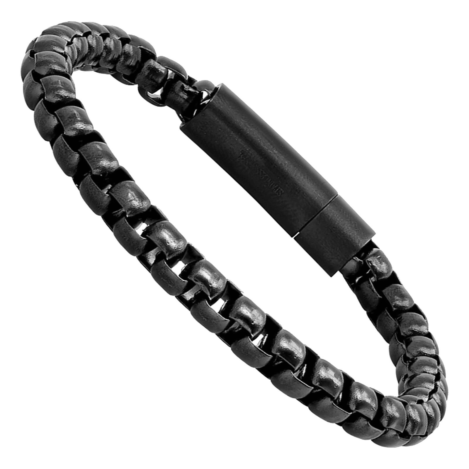 Stainless Steel Distressed Gun Metal Color Chain Bracelet with Steel Bayonet Bar Clasp