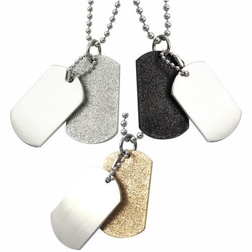 Stainless Steel Dog Tag Pendant w/ Sandblast Design. This Item Comes In Three Different Colors!!