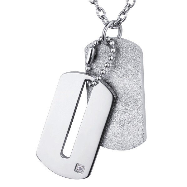 Stainless Steel Dog Tag Pendant with Clear CZ Stone & Sand Blast Design. Great Item for Fathers Day.
