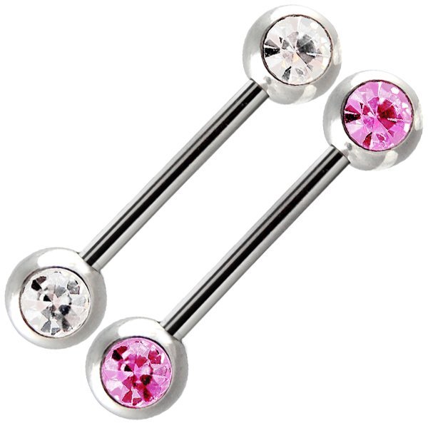 Grade 316L Stainless Steel Double Jeweled Straight Barbell for Nipple Piercings.
