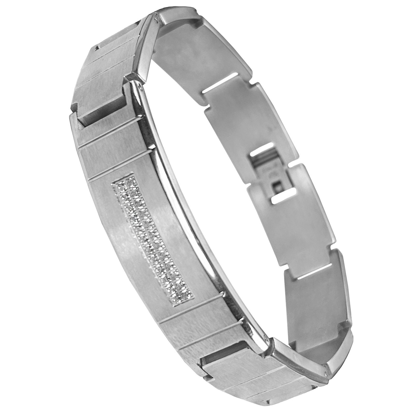 Stainless Steel Fancy Bracelet with Micro Pave Setting cz on Center