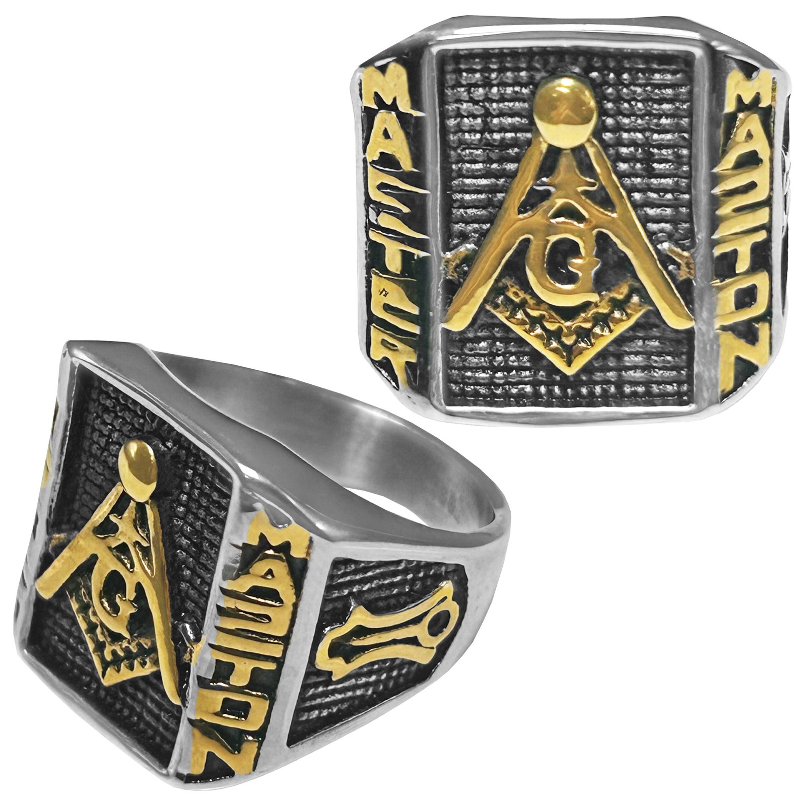 Stainless Steel & Gold Accent Masonic Ring