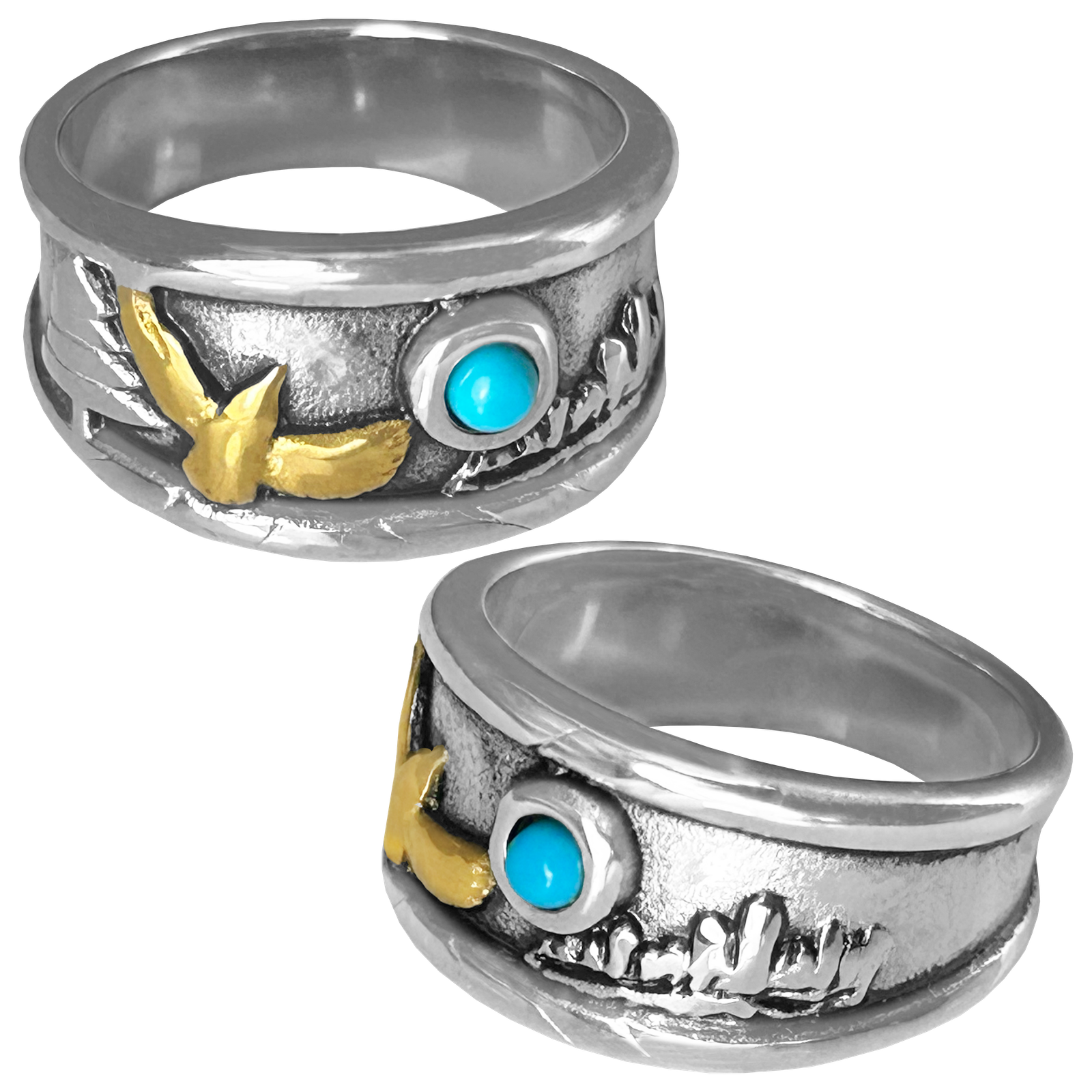Stainless Steel Gold Eagle & Turquoise in Forest Ring