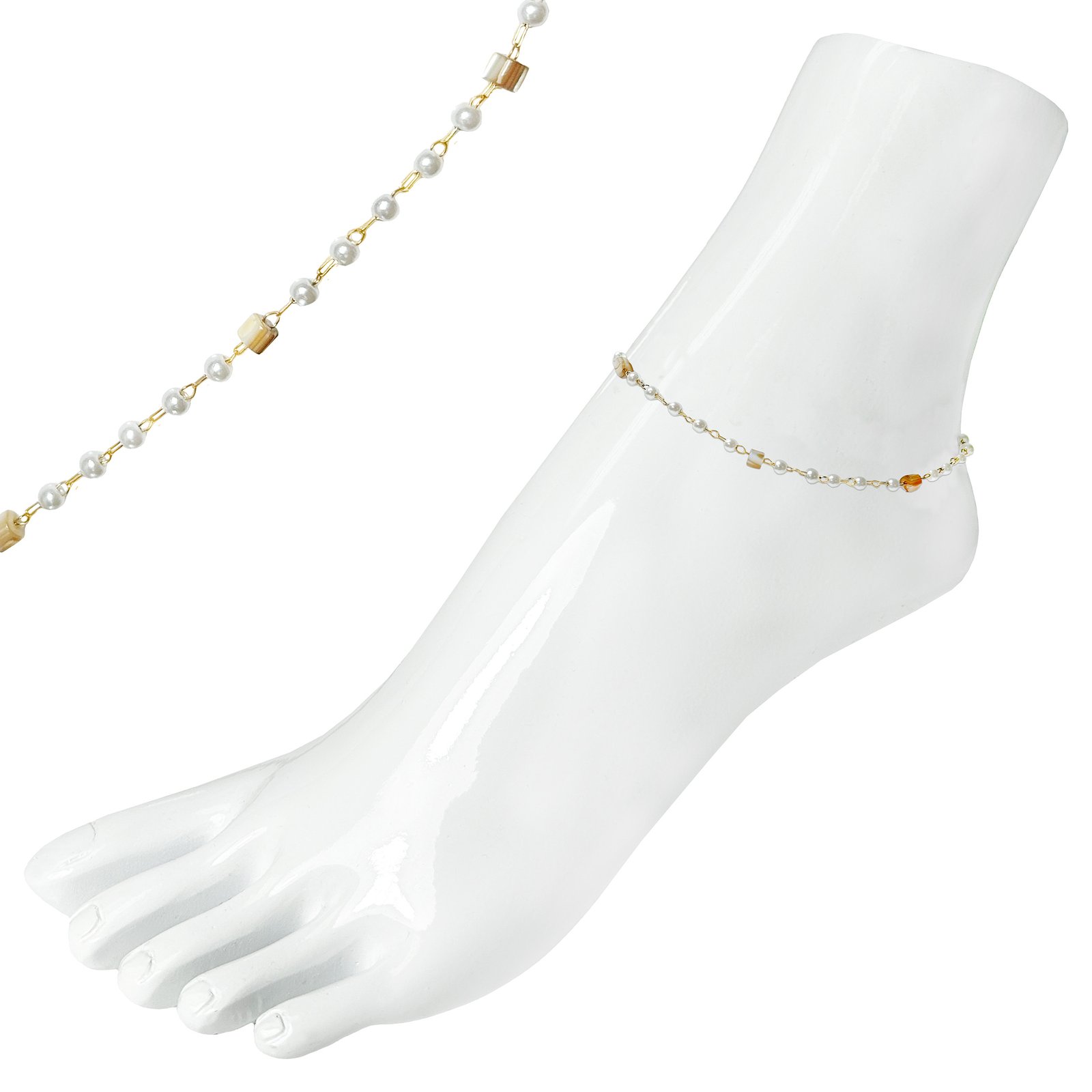 Gold Stainless Steel Natural Stones w/ Faux Pearls Anklet