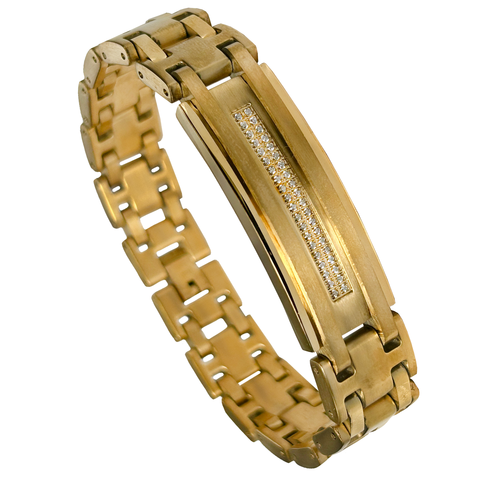 Stainless Steel Gold pvd Bracelet with Micro Pave Setting cz on Ctr