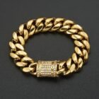 Stainless Steel Gold PVD Cuban Chain Bracelet & CNC Clasp