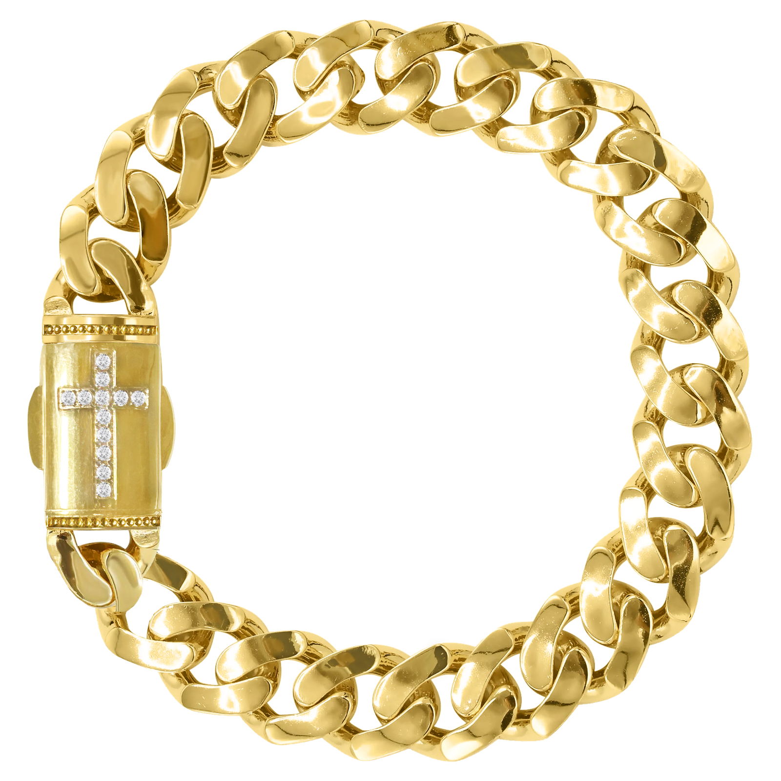 Stainless Steel Gold Pvd Cuban Link Bracelet w/ CNC Cross on Clasp