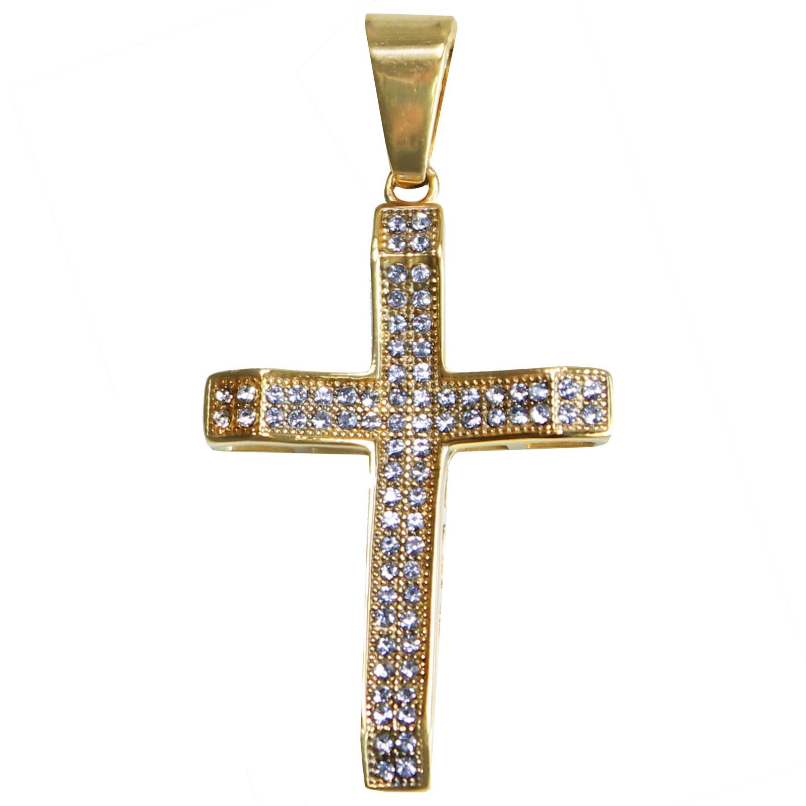 Stainless Steel Gold PVD CZ Encrusted Cross Pendant