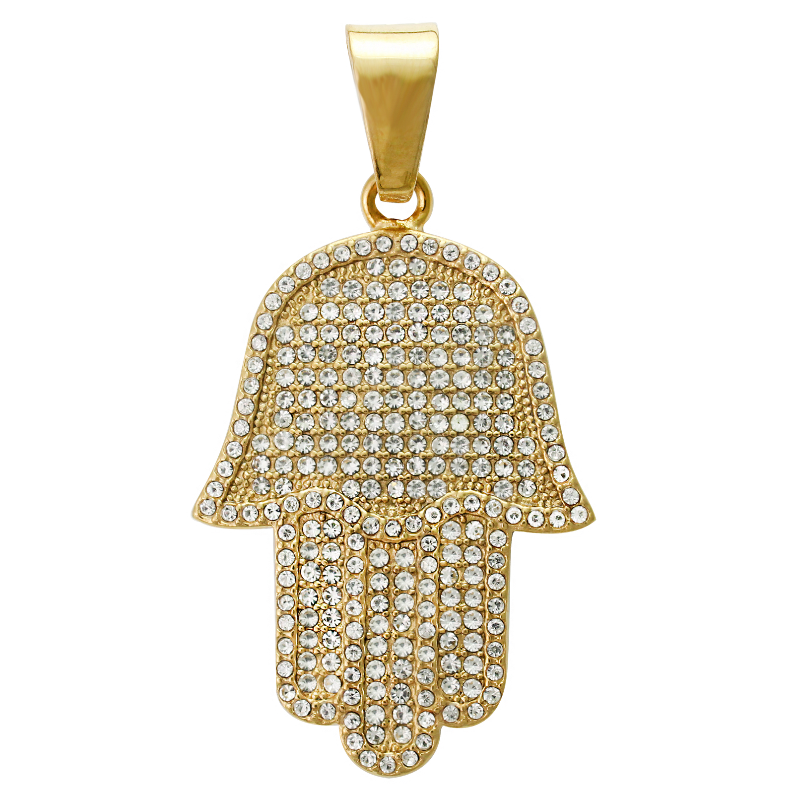 Stainless Steel Gold PVD CZ Hamsa Pendant