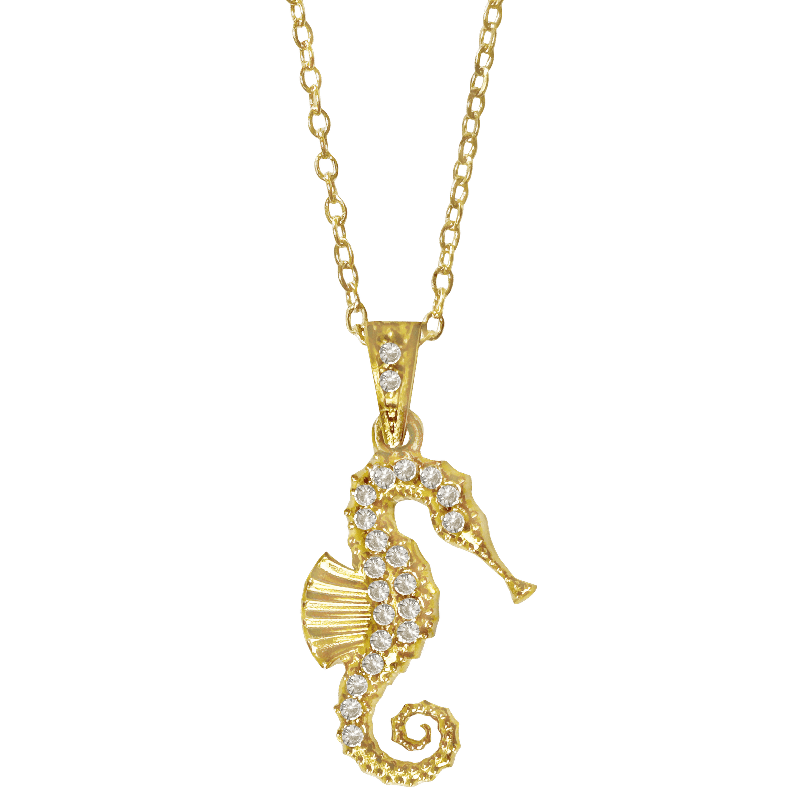 Stainless Steel Gold PVD Cz Seahorse Necklace