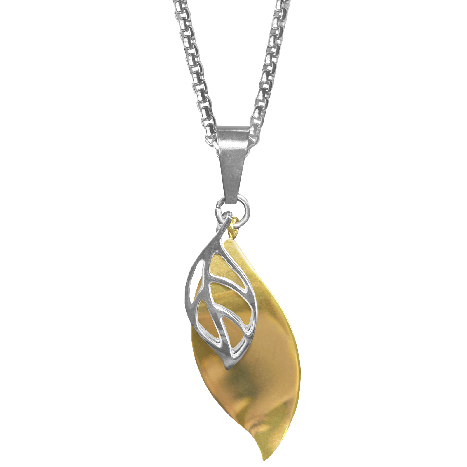 Stainless Steel & Gold PVD Leaf Necklace