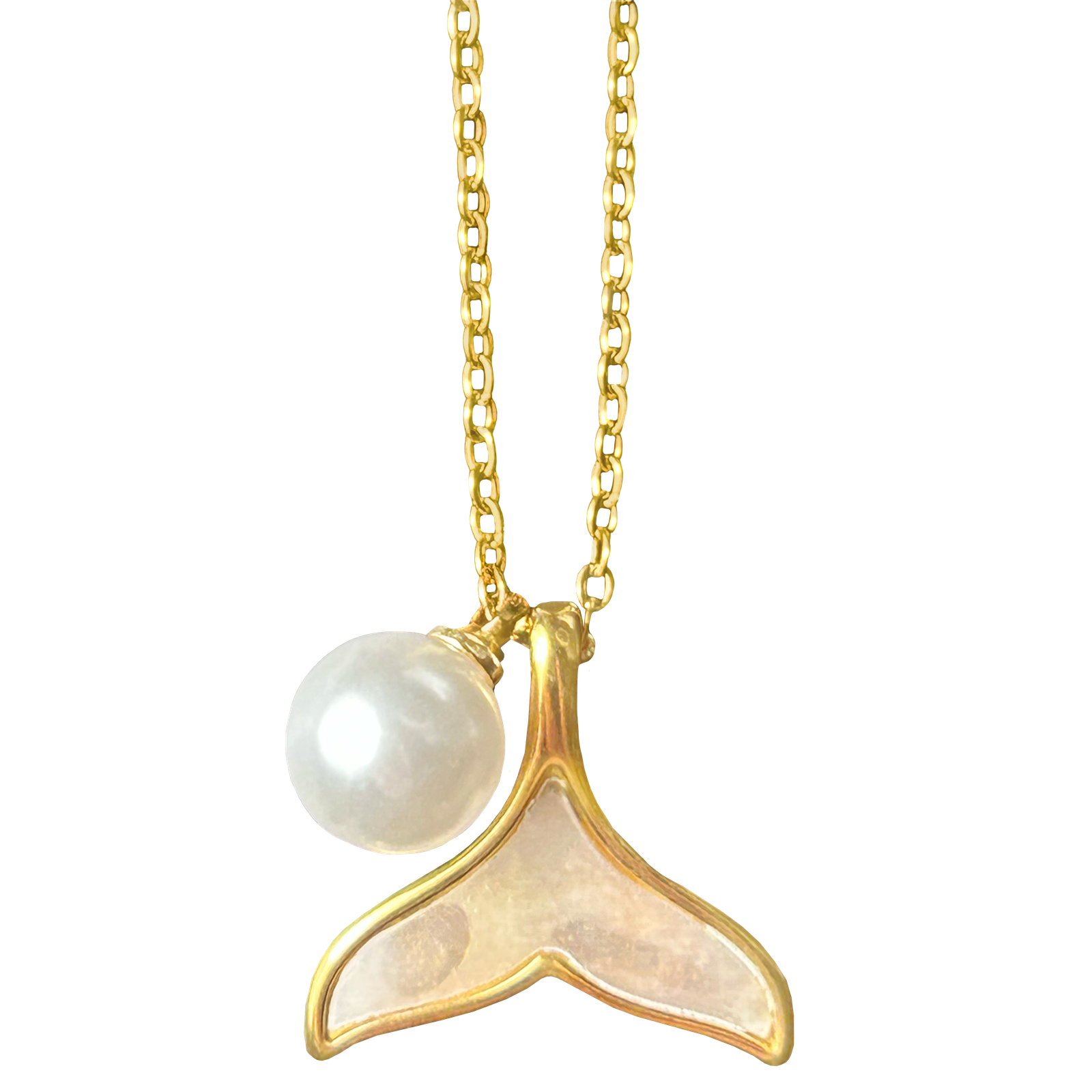 Stainless Steel Gold PVD Necklace w/ Fishtail & Pearl Pendant
