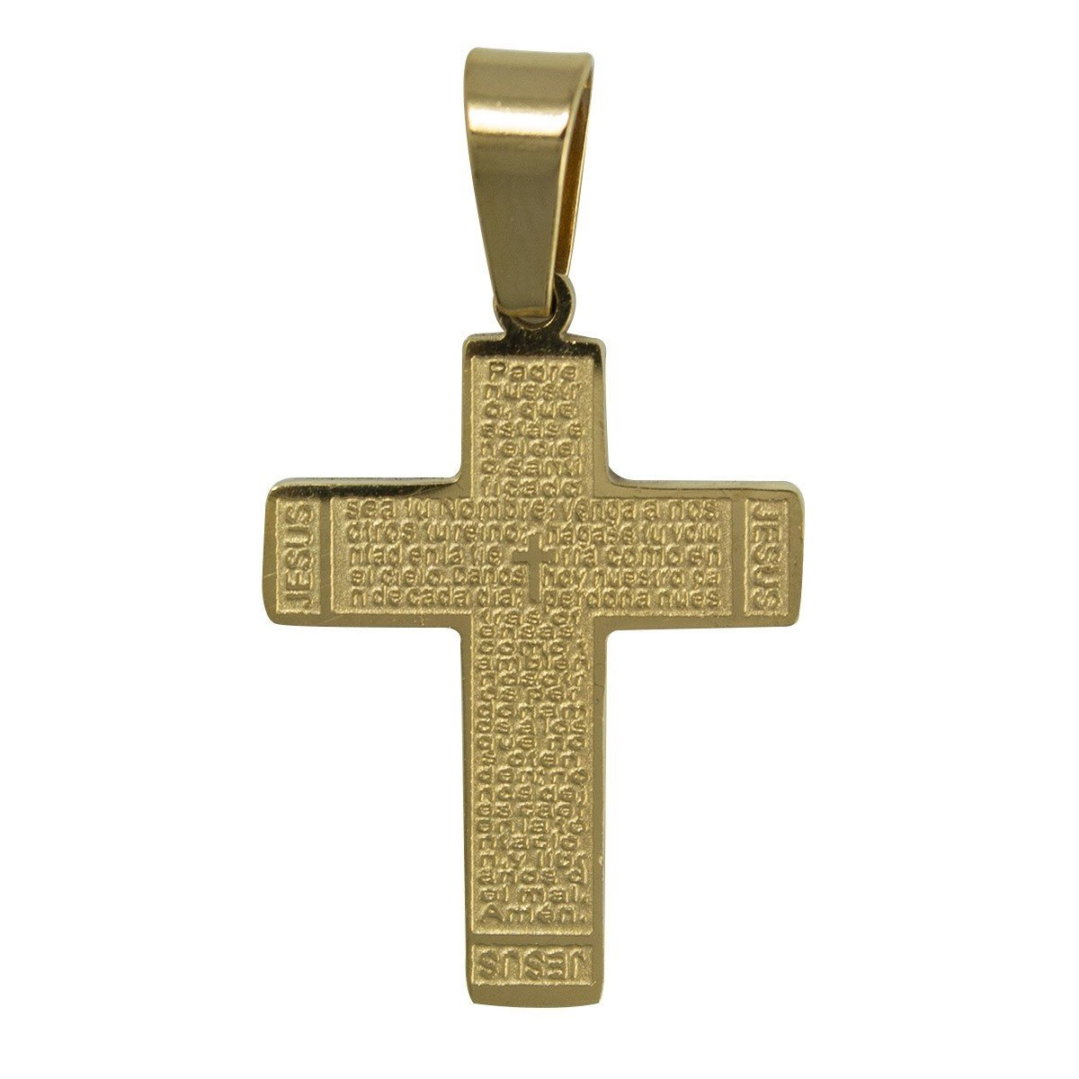 Stainless Steel Gold PVD Padre Nuestro Prayer Cross Pendant