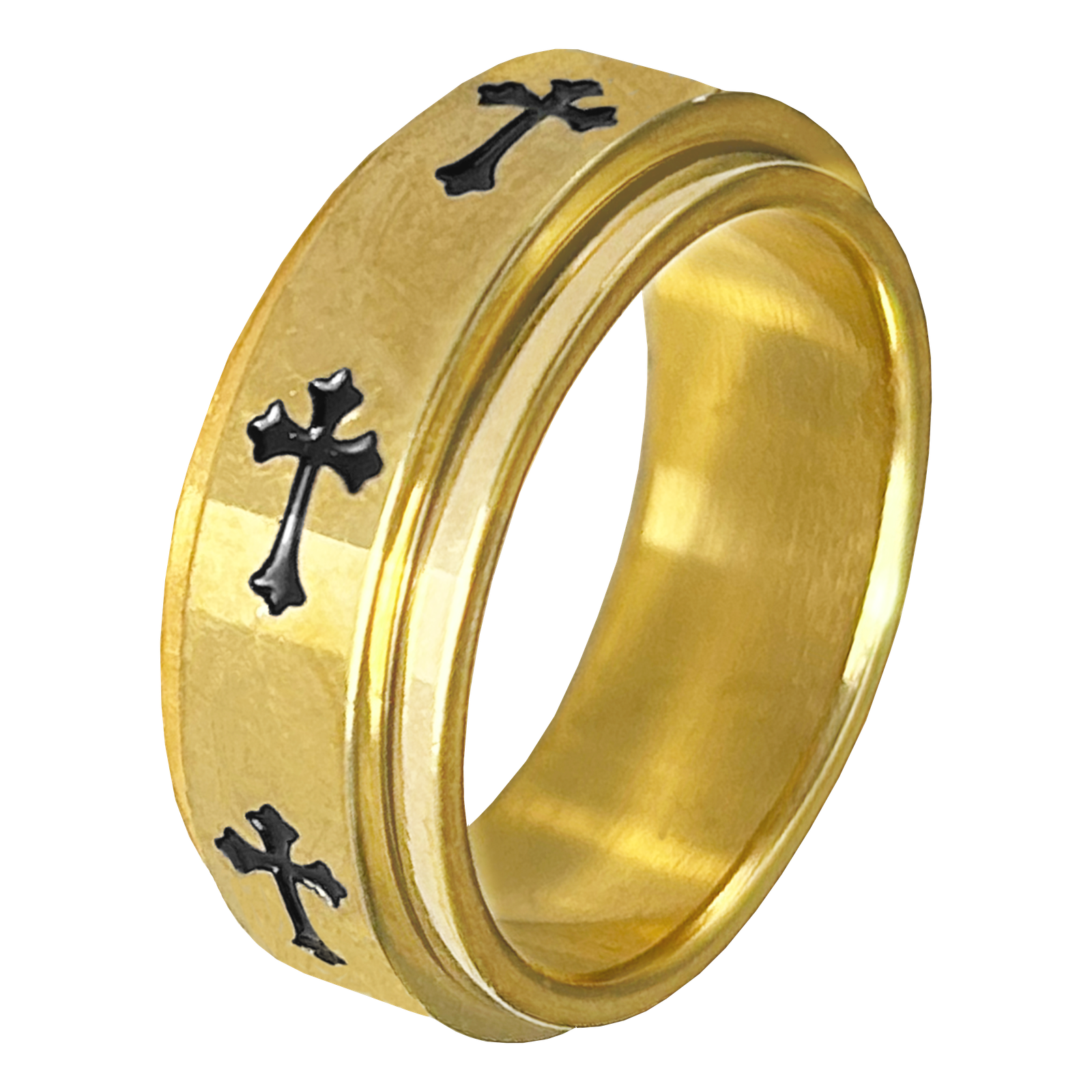 Stainless Steel Gold Pvd Spinner Ring w/ Crosses quantity