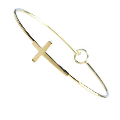 Stainless Steel Gold Toned Bangle with Cross Accent