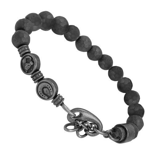 Stainless Steel Grey Beaded Bracelet with Horse and Horseshoe Charms