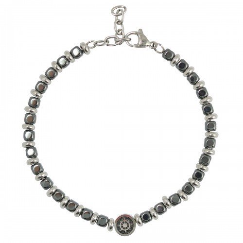 Stainless Steel Grey Beads Bracelet with Nautical Wheel Charm
