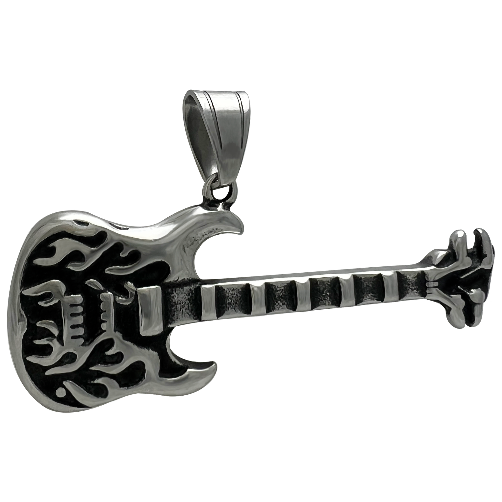 Stainless Steel Guitar w/ Flames Pendant