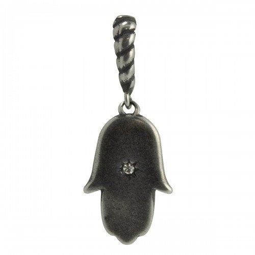 Stainless Steel Gun Color Hamsa with CZ Stone Pendant