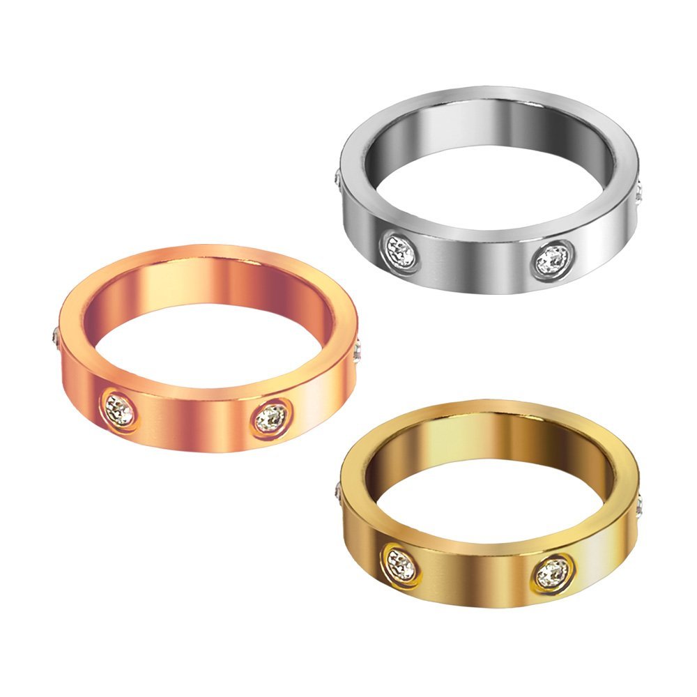 Stainless Steel Jeweled Band Ring 4MM