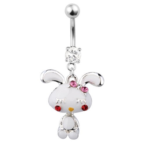 This Belly Ring has a Cute White Rabbit Design with Red Stones Eyes
