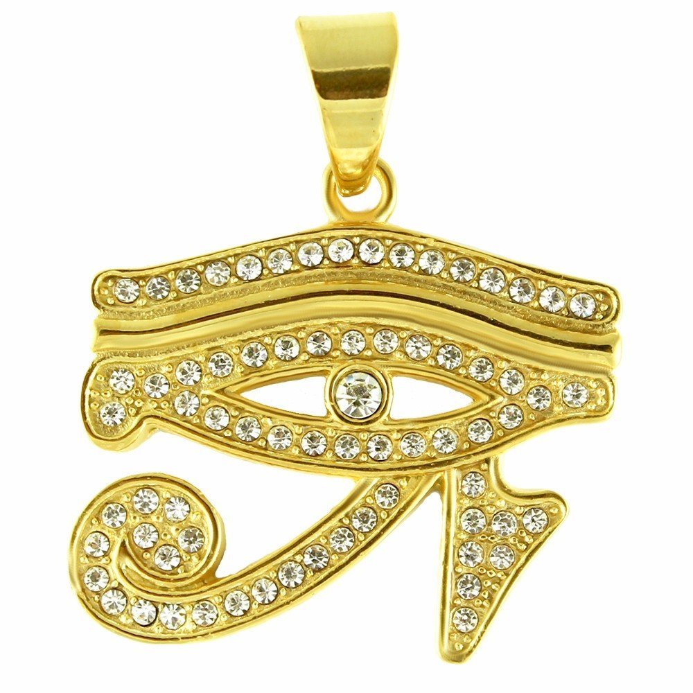 Stainless Steel Jeweled Gold PVD Eye Of RA Pendant