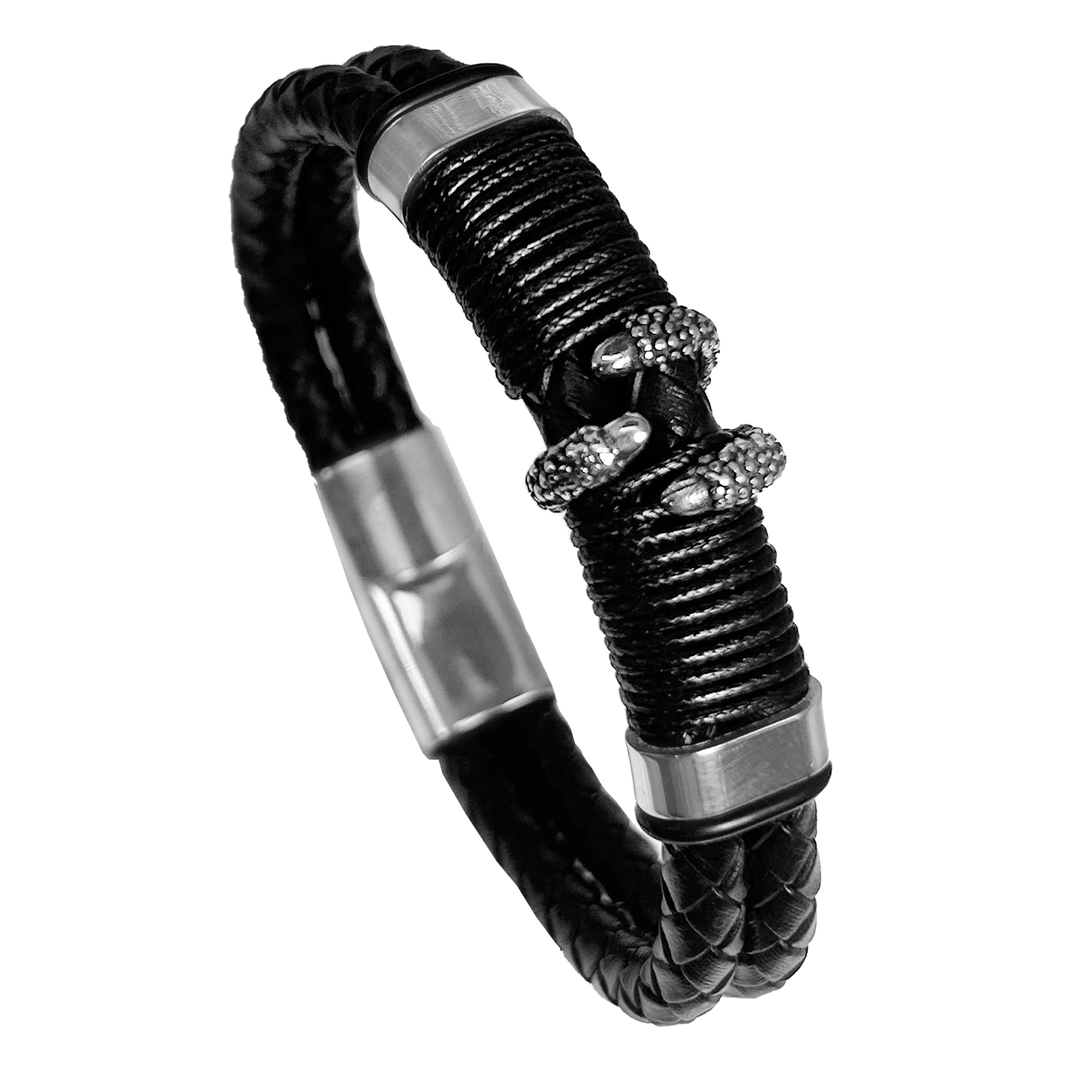 Stainless Steel Leather Bracelet with Dragon Claw CTR Accent