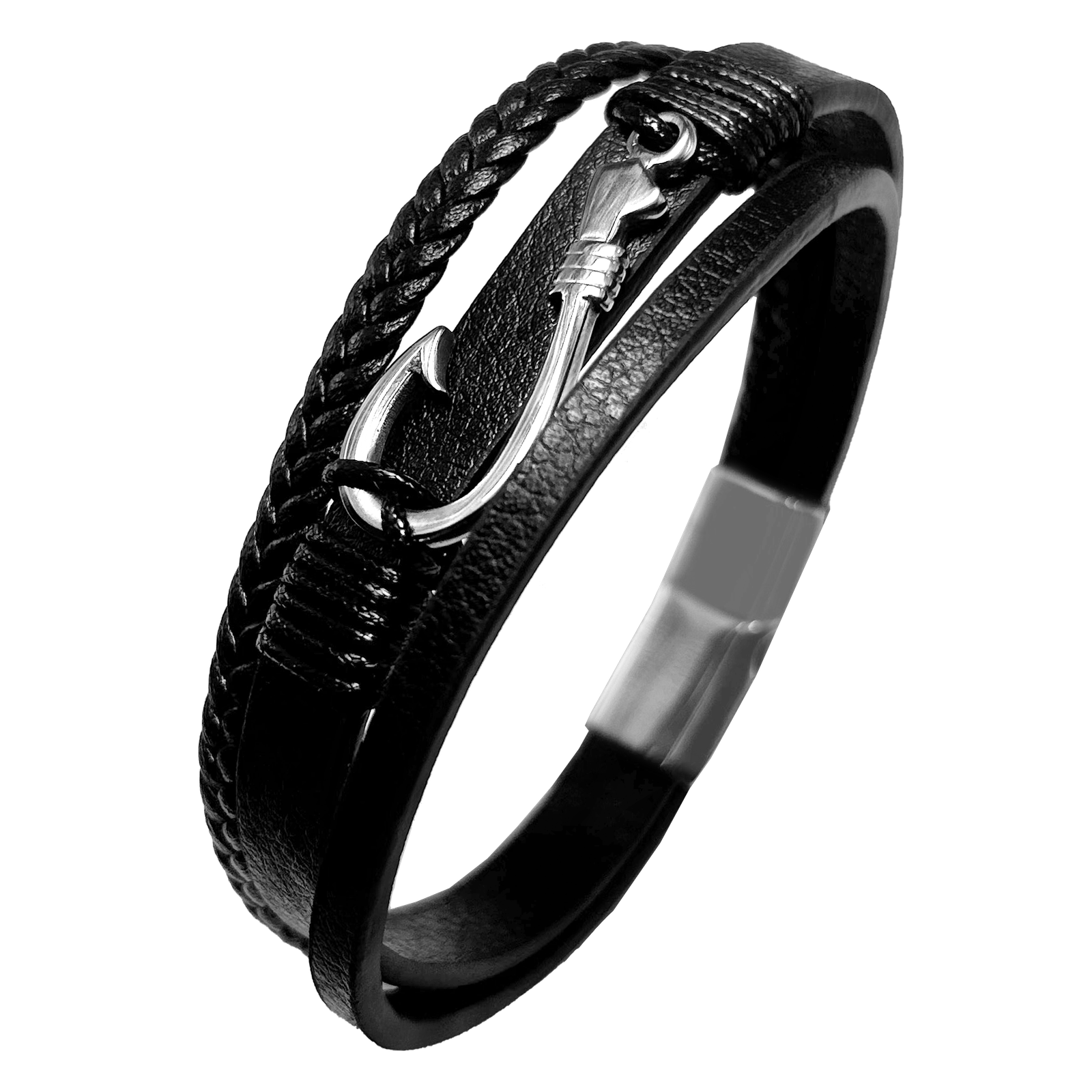 Stainless Steel Leather Bracelet with Fishing Hook in CTR