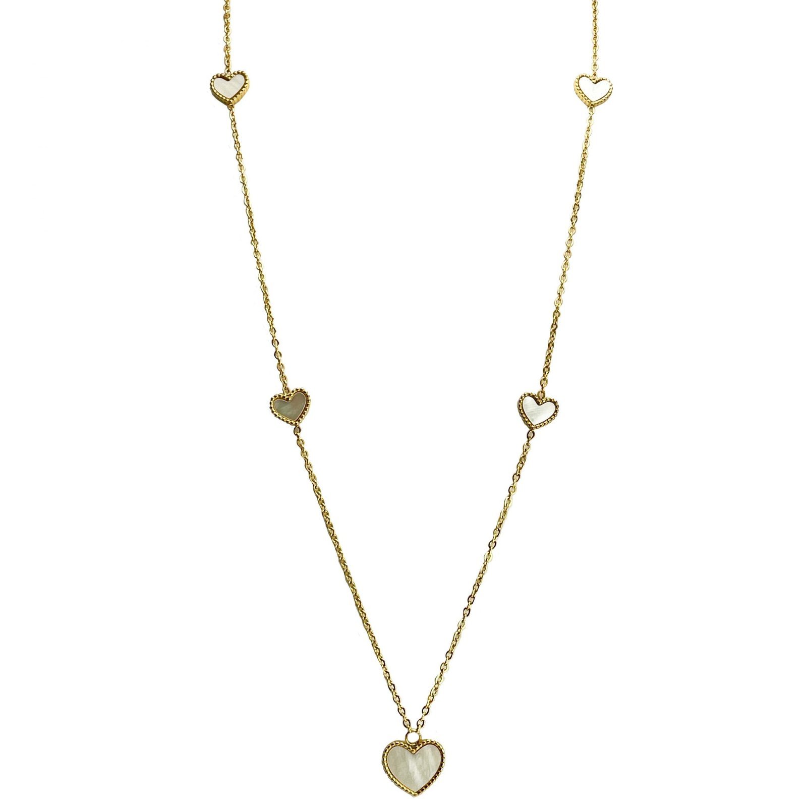 Stainless Steel Long Fashion Necklace in Gold with Heart Shaped Opal Accents