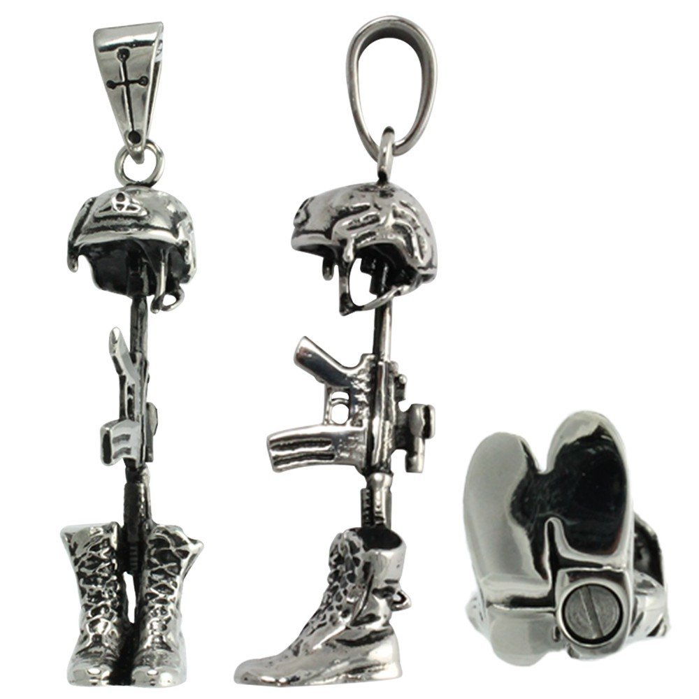 Stainless Steel Memorial of Fallen Soldier Ash Holder Pendant