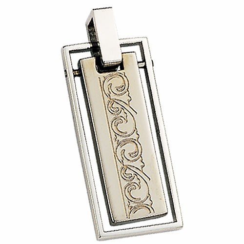 Stainless Steel Moveable Pendant – Etched Design on Black Background