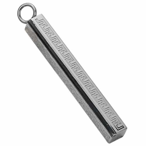 Stainless Steel Pendant with Etched Design and Black Stripe