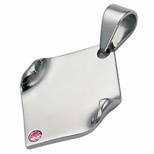 Stainless Steel Pendant with One Pink Stone