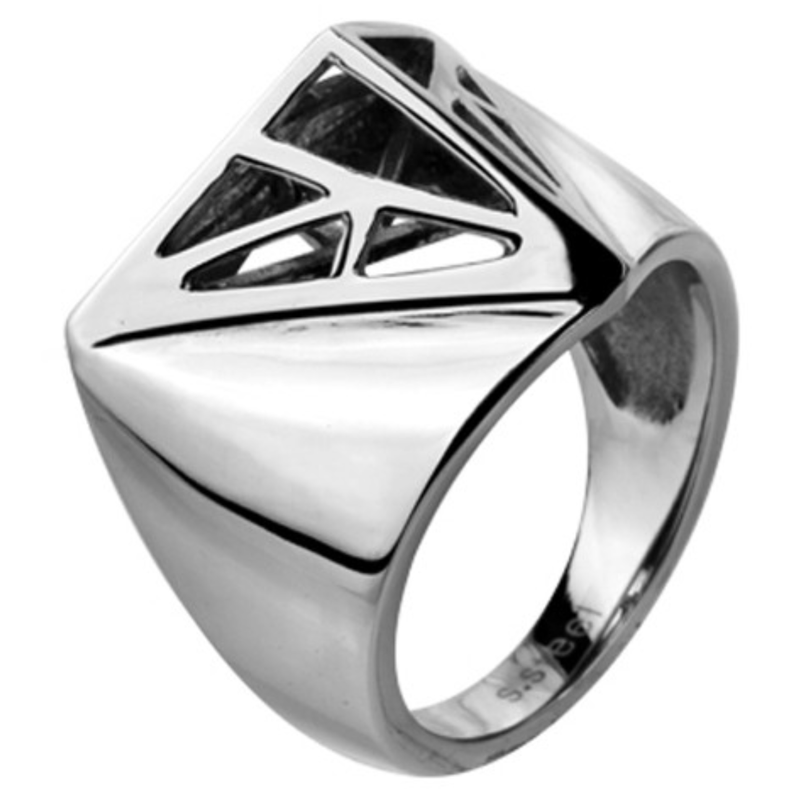 Stainless Steel Ring With Cut Out Pyramid Design.