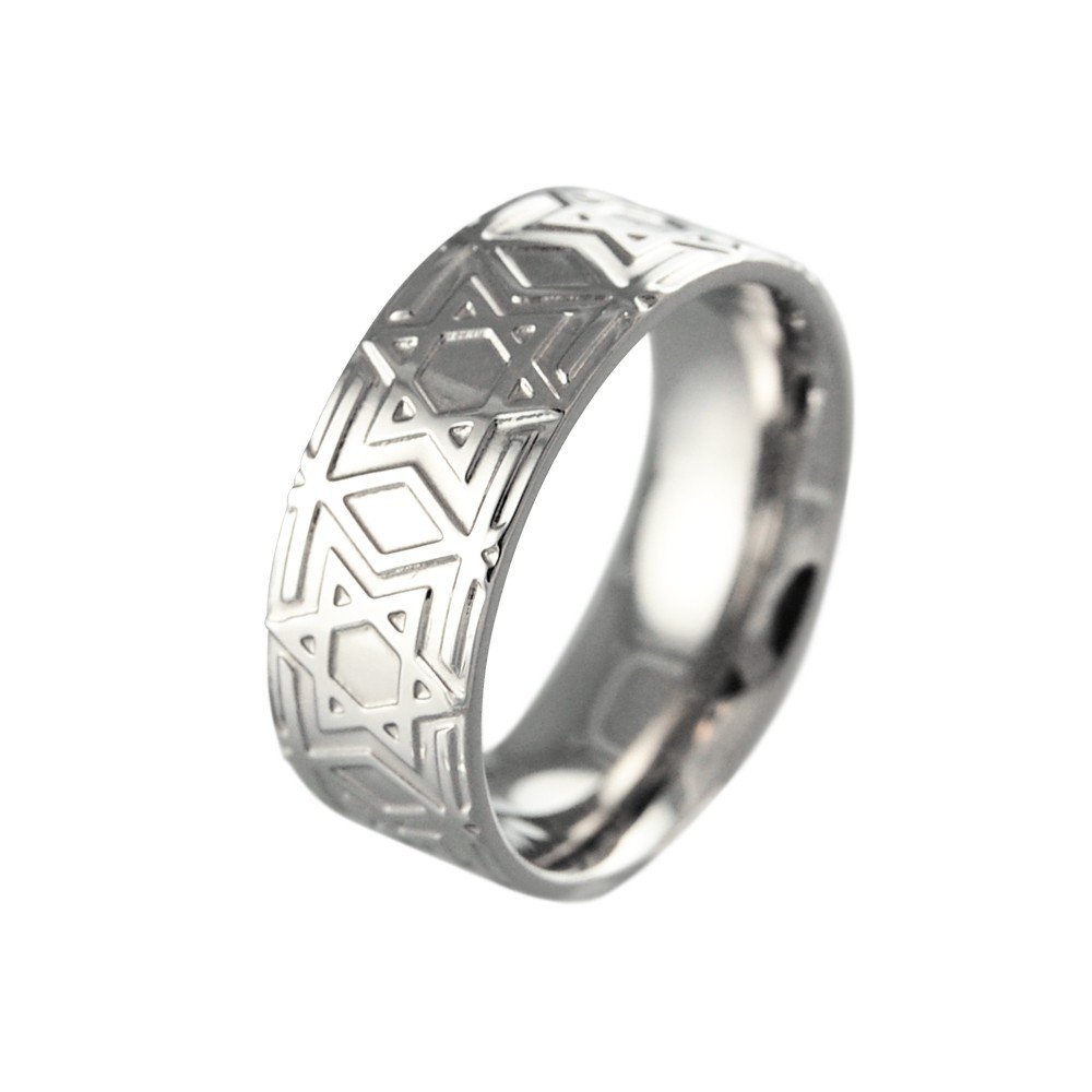 Beautiful Stainless Steel Ring With Star Of David Pattern. This Ring Is A Comfort Fit Band and Has a Stunning Shinny Finish. Also Great Item for Fathers Day.
