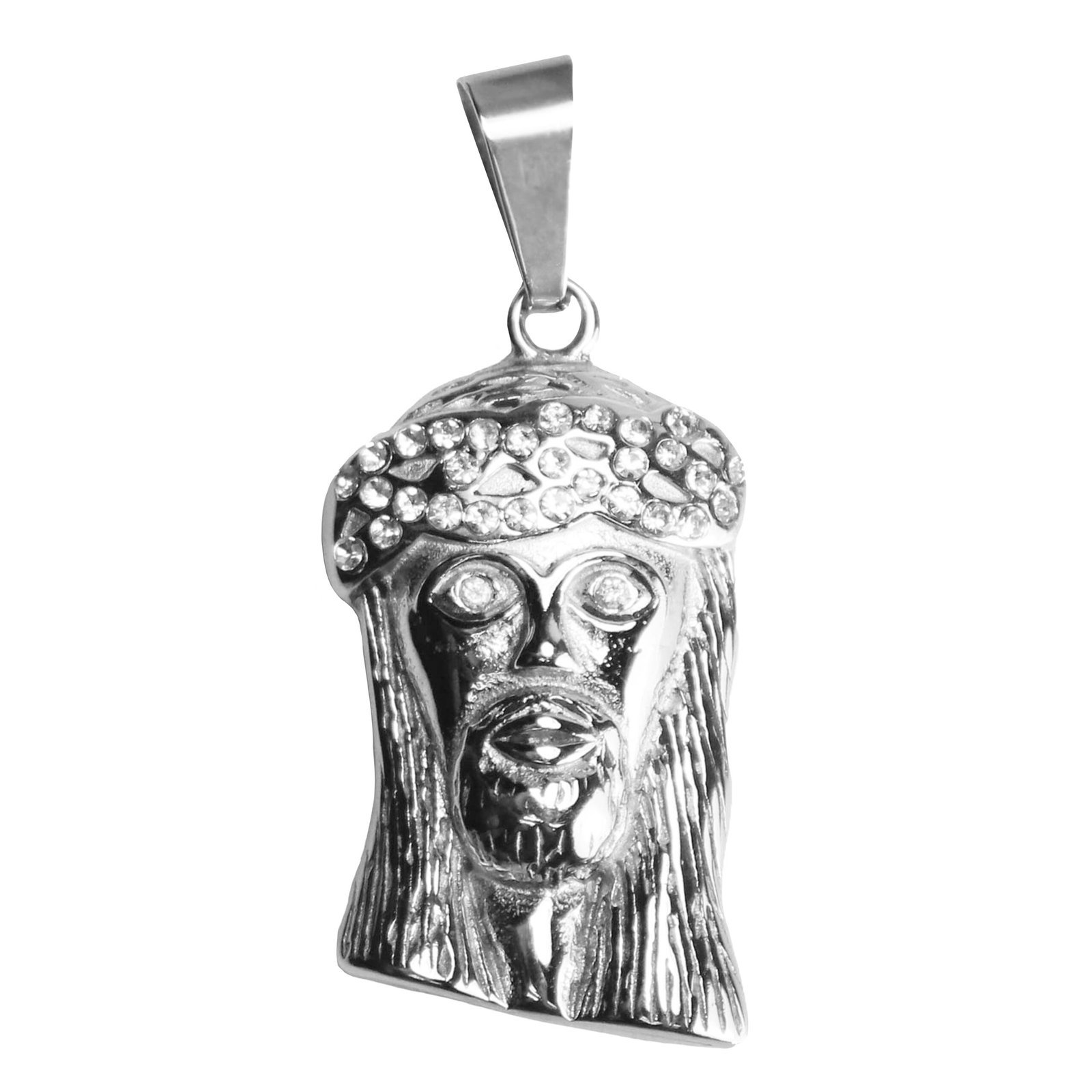 Stainless Steel Silver CZ Encrusted Jesus Pendant