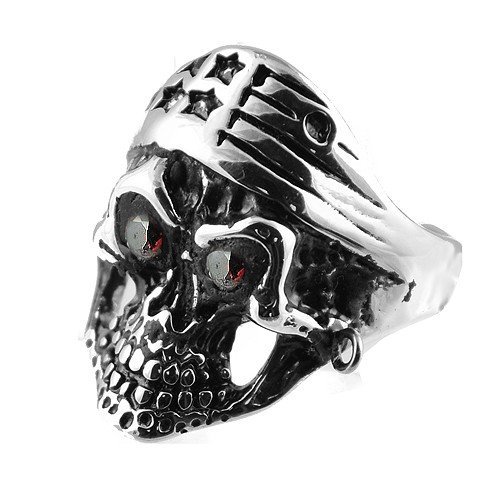 Stainless Steel Skull Ring with Red Eyes