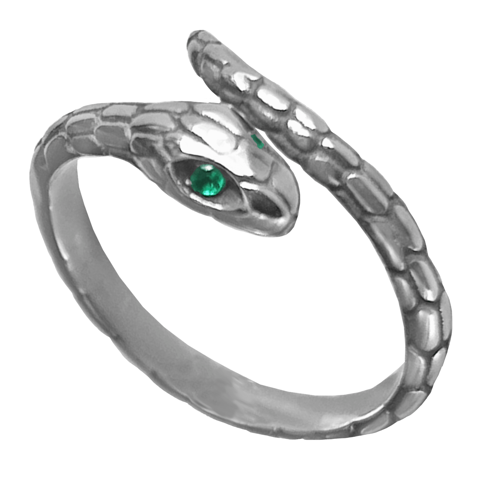 Stainless Steel Snake Ring w/ Green Stone Eyes