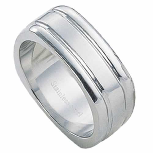 Stainless Steel Square Shaped Ring w/ Horizontal Stripes