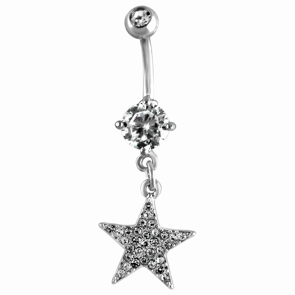 Stainless Steel Star CZ Dangle Belly Ring