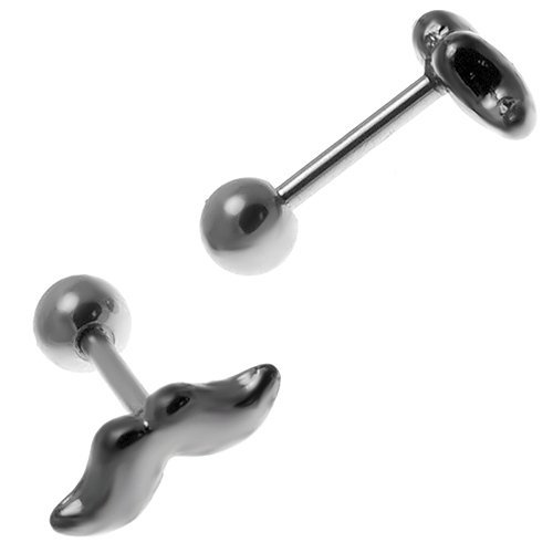 Stainless Steel Tragus/Helix Barbell with Mustache Design.