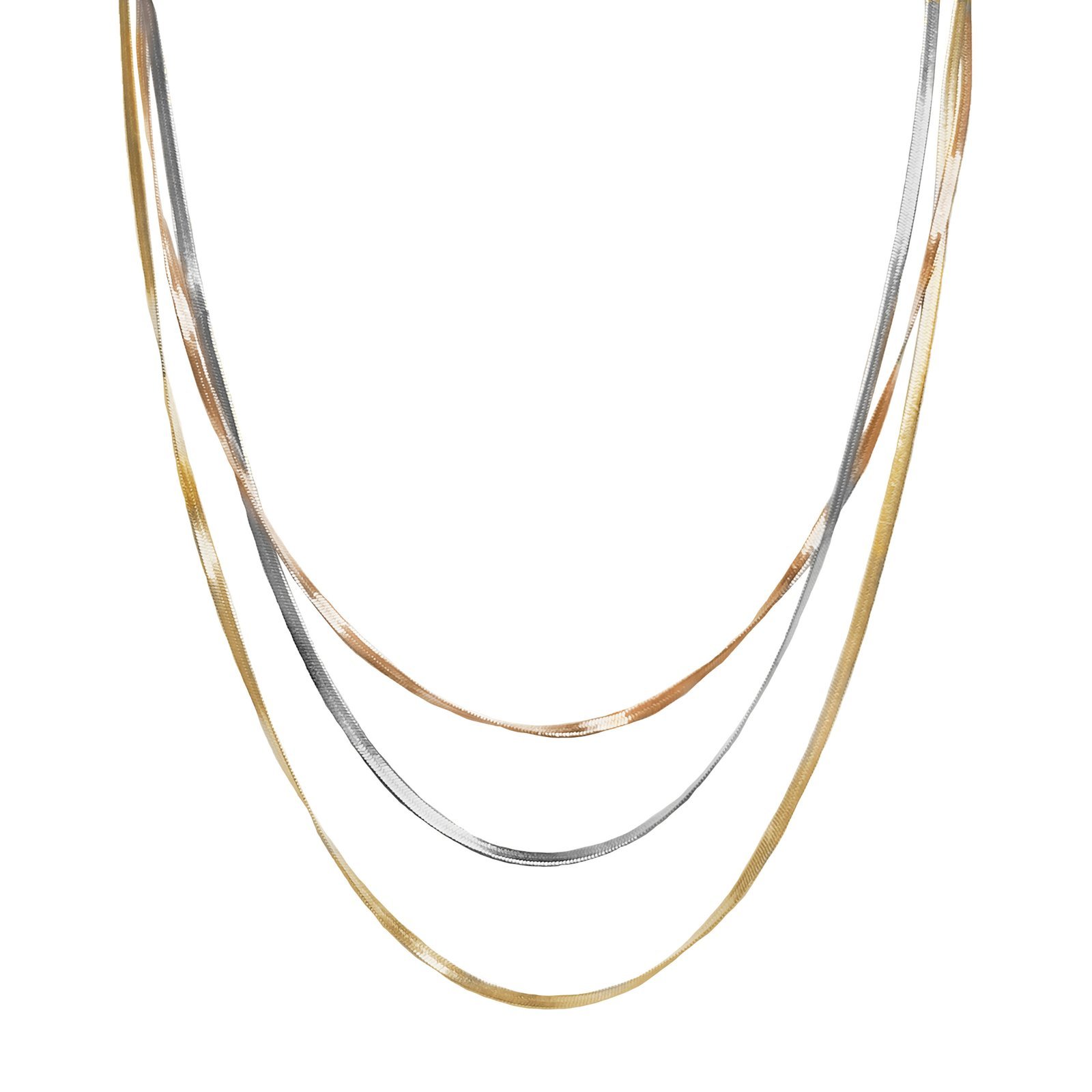 Stainless Steel Tri-Color Layered Flat Snake Chain