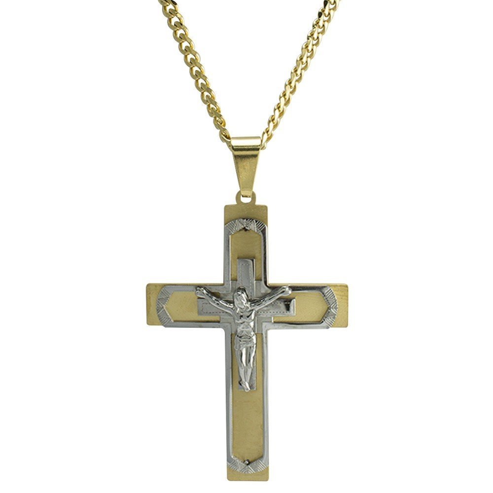 Stainless Steel Two Tone Crycifix Pendant w/ Necklace