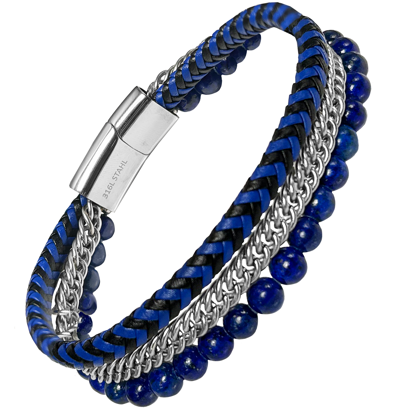 Stainless Steel Guitar w/ Lapis Lazuli Stone Leather Bracelet